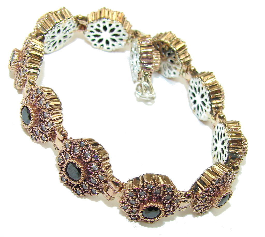 Victorian Style Black Spinel, Rose Gold Plated Sterling Silver Bracelet
