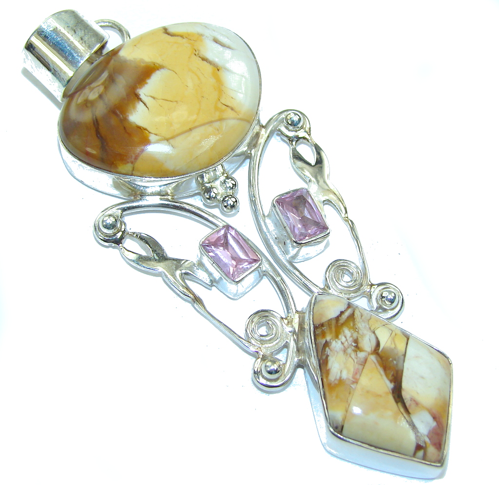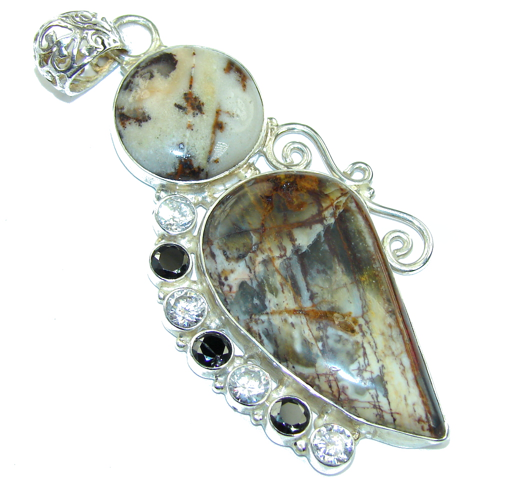 Large! Stylish Burro Creek Jasper Sterling Silver Pendant