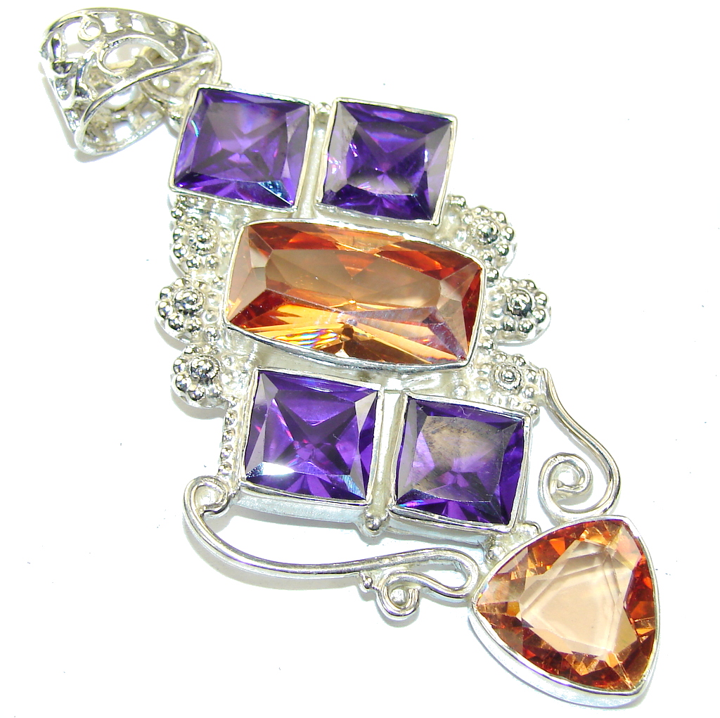 Big! Precious Golden Topaz Quartz Sterling Silver Pendant