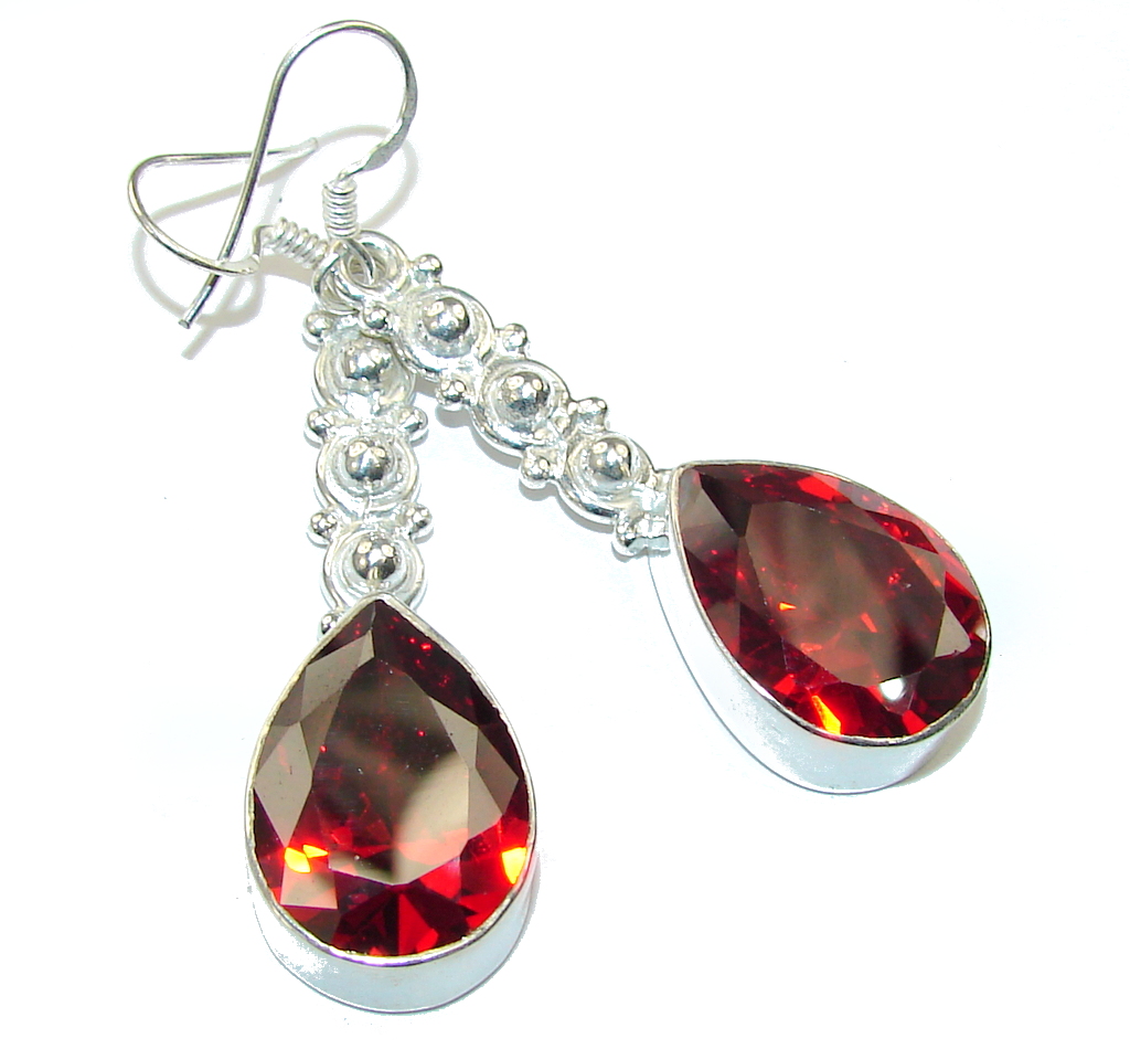 Deep Love! Created Red Garnet Sterling Silver earrings / Long