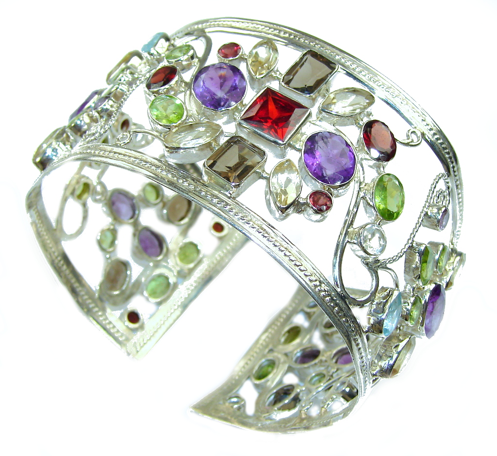 Aura Of Beauty! Multistone Sterling Silver Bracelet / Cuff