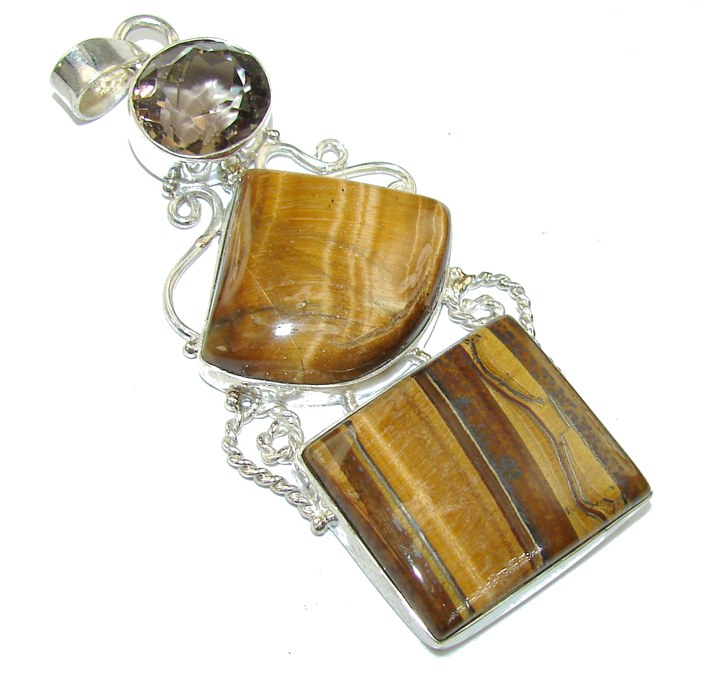 Big! Beauty Vision! AAA Golden Tigers Eye Sterling Silver Pendant
