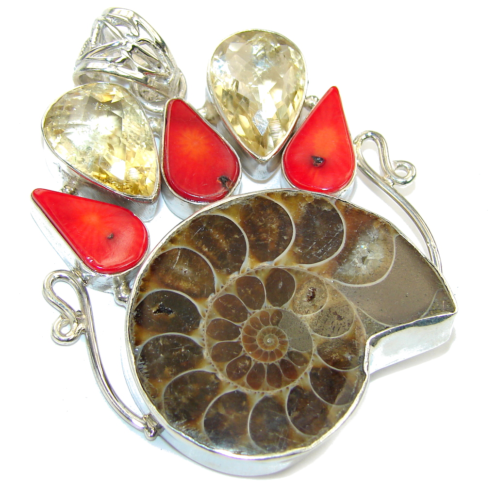 Big! Fashion Brown Ammonite Fossil Sterling Silver Pendant