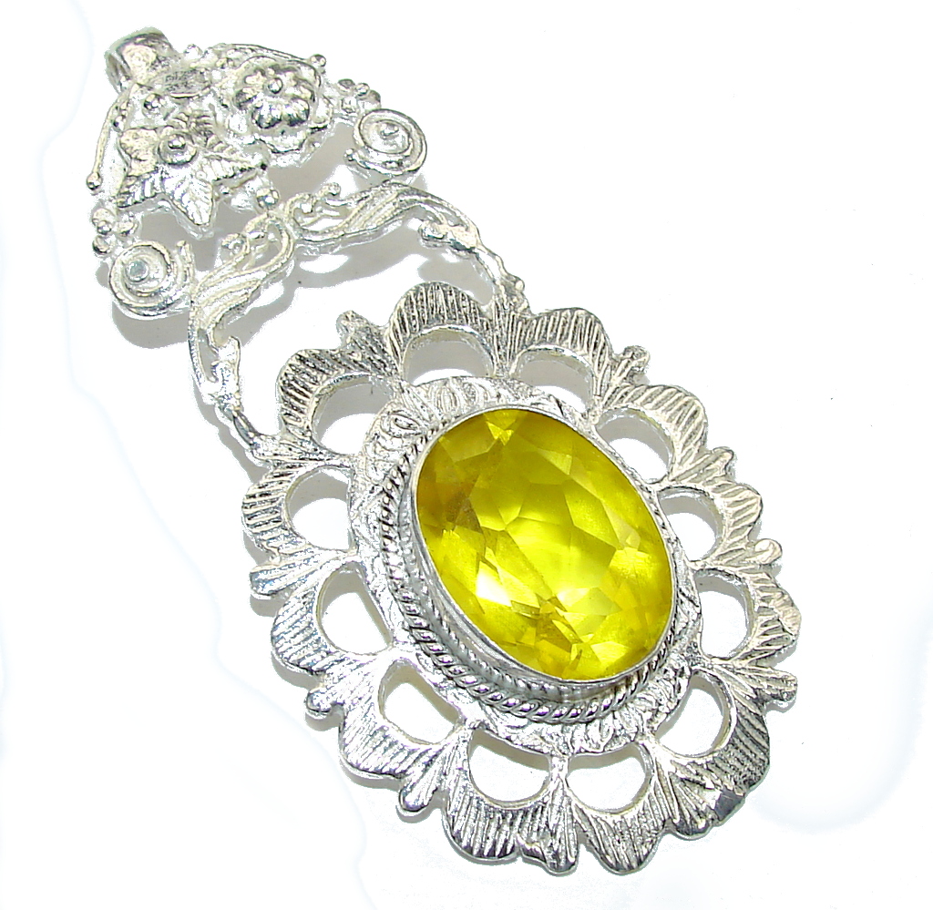 Large! Created Yellow Citrine Sterling Silver Pendant