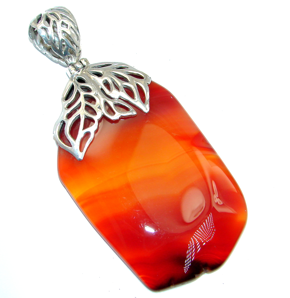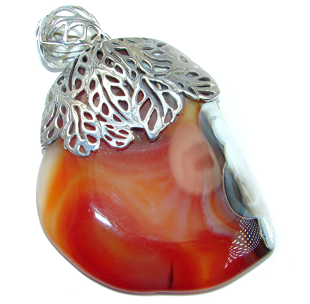 Huge Genuine Sunrise Sonora Jasper Garnet Sterling Silver handmade Pendant