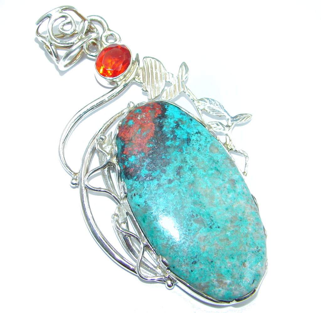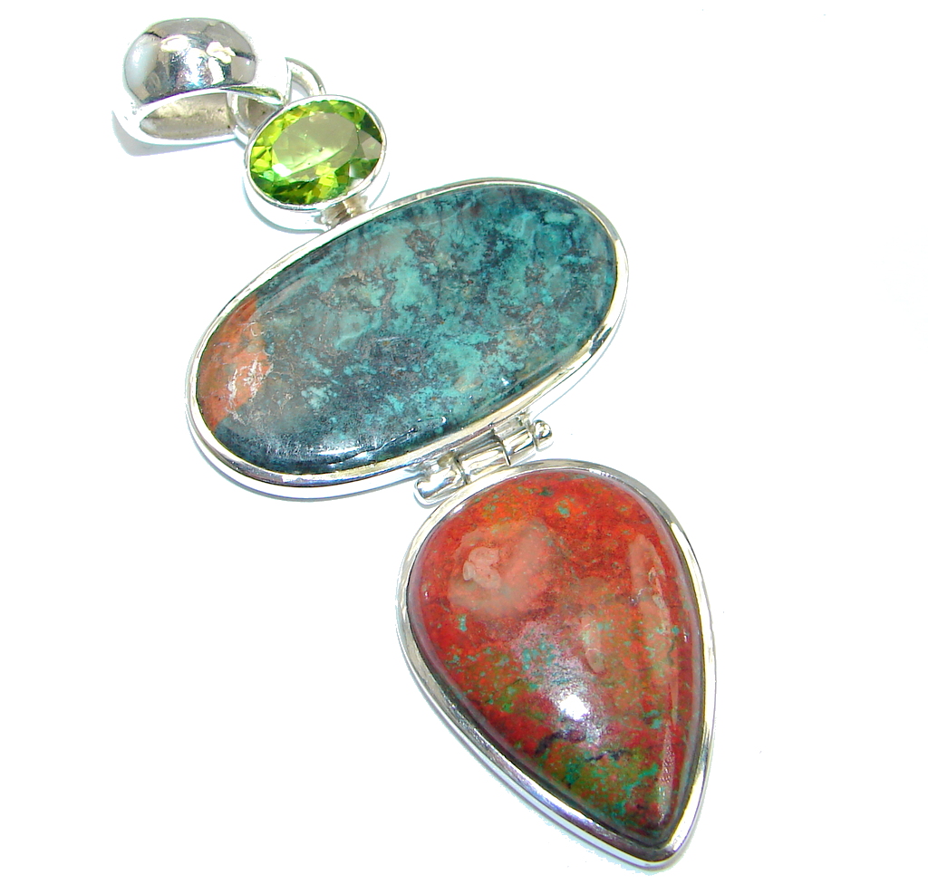Genuine Sunrise Sonora Jasper Peridot Sterling Silver handmade Pendant
