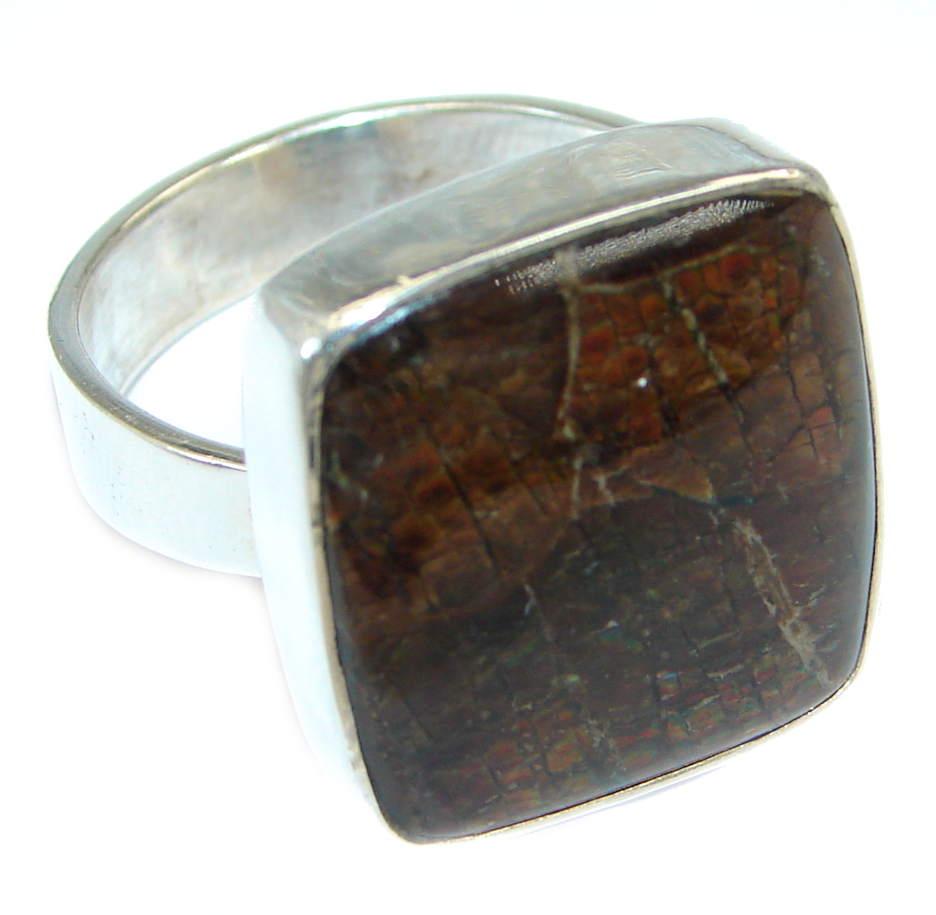 Authentic Orange Fire AAA Ammolite Sterling Silver ring s. 9