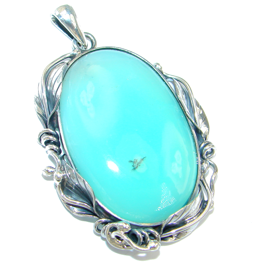 Pale Beauty genuine Chrysoprase Oxidized Sterling Silver Pendant
