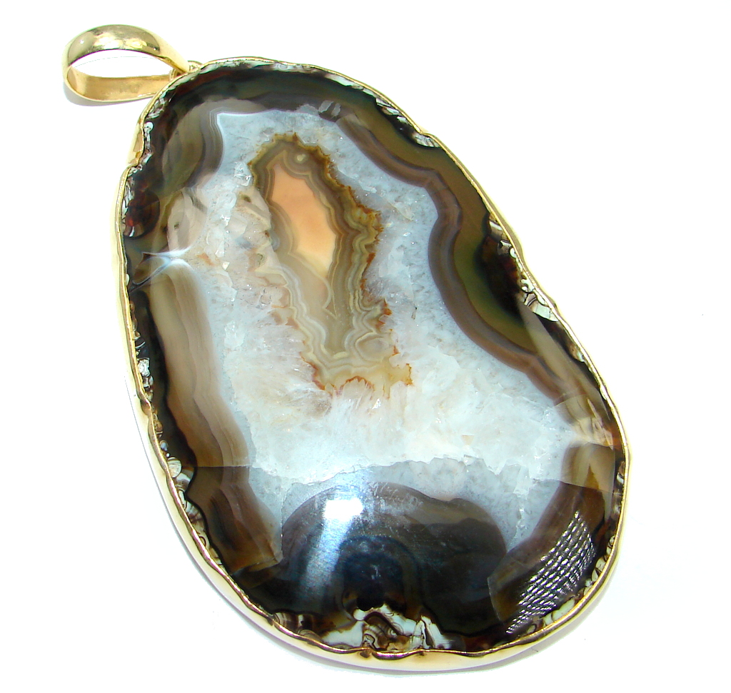Huge 70.5 grams! Botswana Agate Gold plated over Sterling Silver handcrafted Pendant