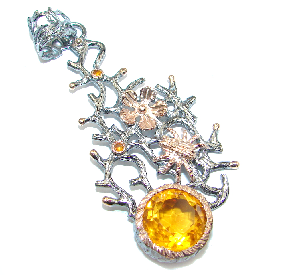 Citrine Gold Rhodium plated over Sterling Silver handmade Pendant