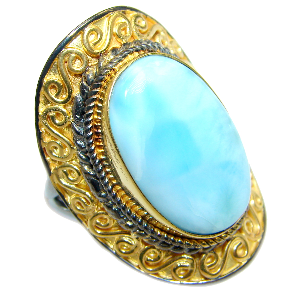Genuine Larimar Gold Rhodium plated Sterling Silver handmade Ring size adjustable