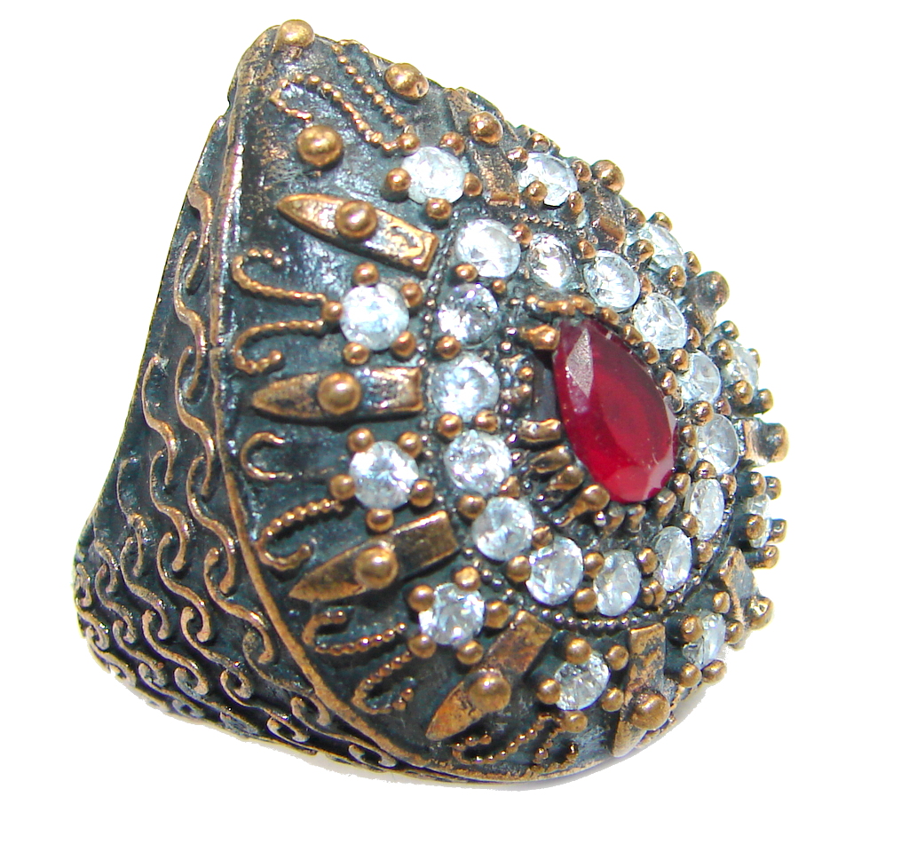 Victorian Style created Ruby & White Topaz Sterling Silver ring; s. 6