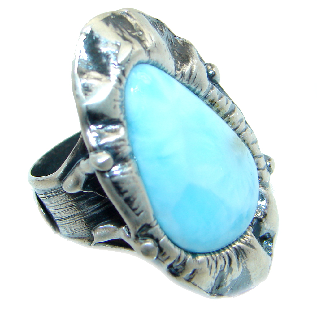 Sublime Genuine Larimar Sterling Silver handmade Ring size 10