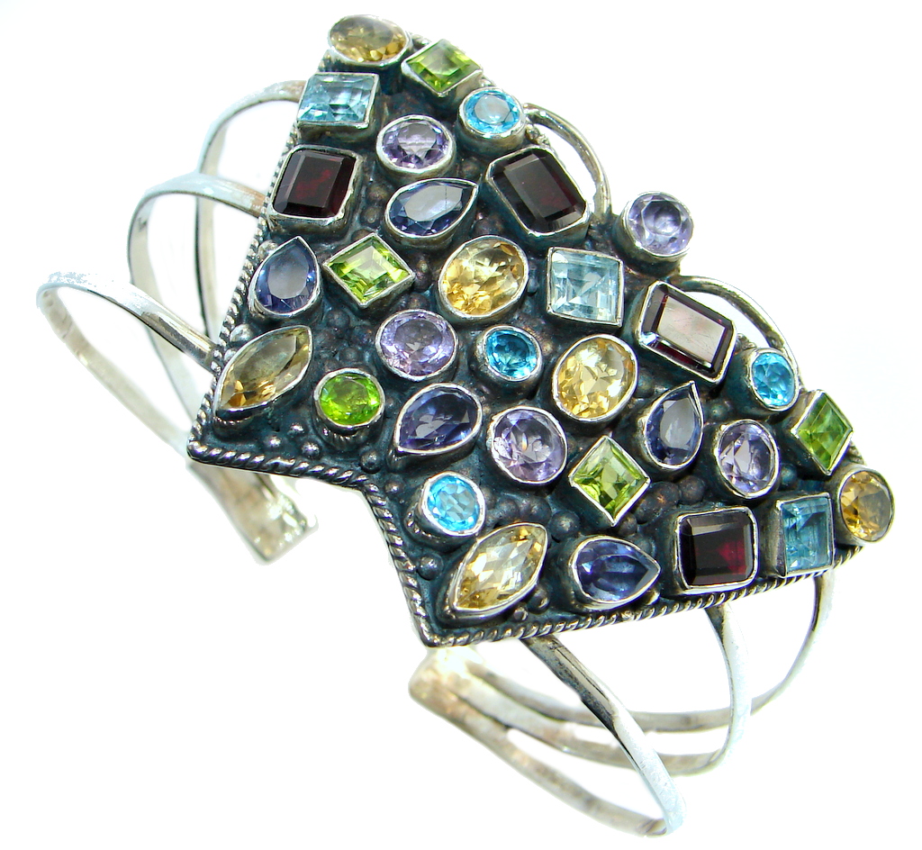 Aura Of Beauty Genuine Multigem Sterling Silver cuff Bracelet