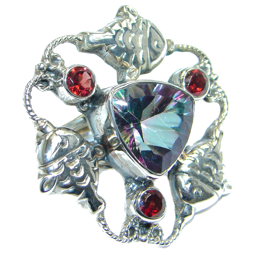Huge Exotic Rainbow Magic Topaz Sterling Silver Ring s. 7
