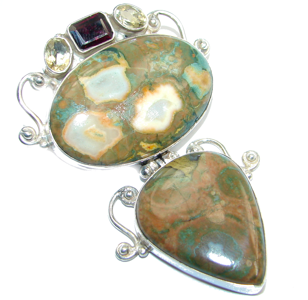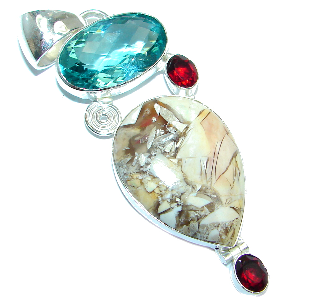 Big Australian Brecciated Mookaite Sterling Silver handcrafted Pendant