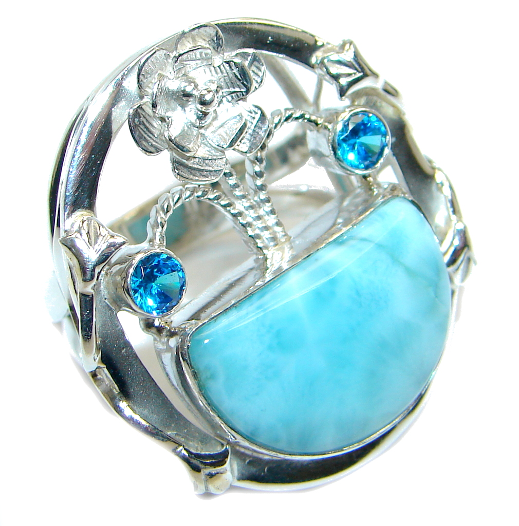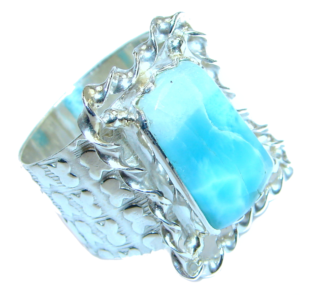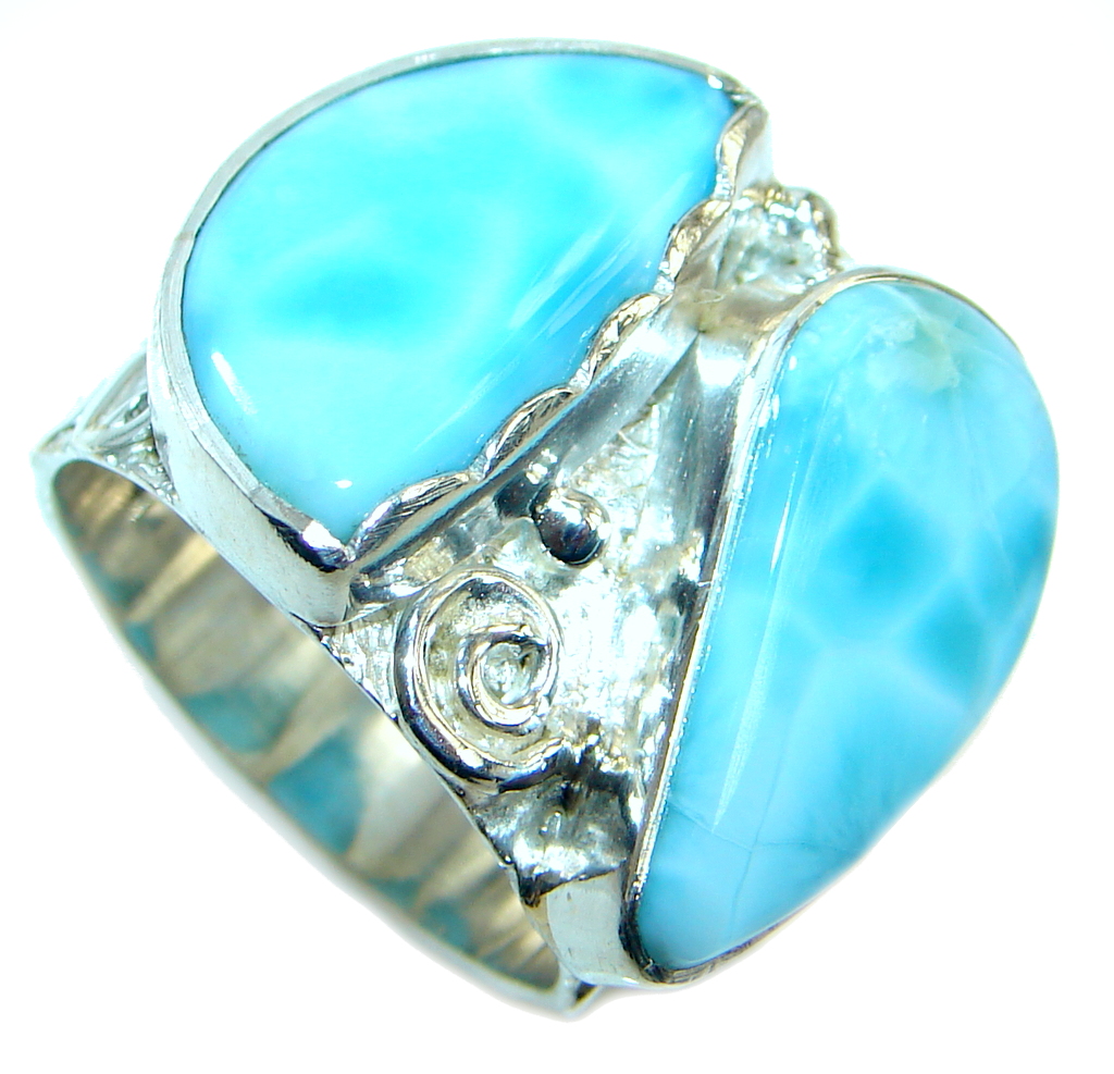 Solid Genuine Larimar Sterling Silver handmade Ring size 8