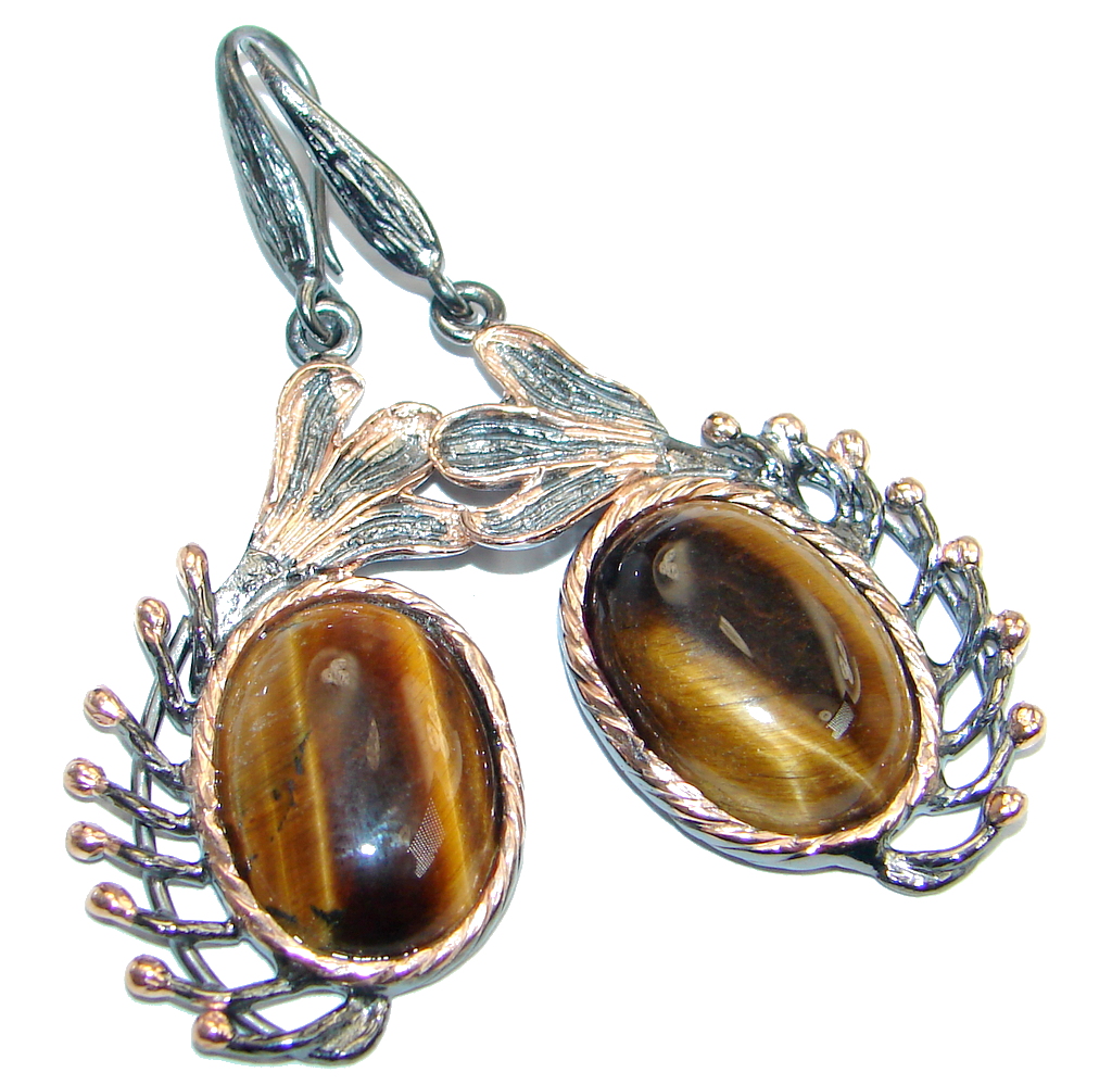 Golden Tigers Eye Two Tones Sterling Silver handcrafted Earrings