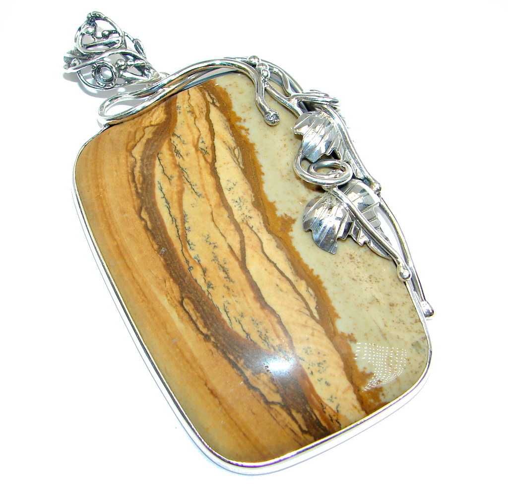 Huge Incredible Floral Design AAA Picture Jasper Sterling Silver handmade Pendant