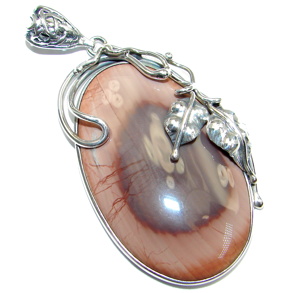 Huge Floral Design Great quality Imperial Jasper Sterling Silver handmade Pendant