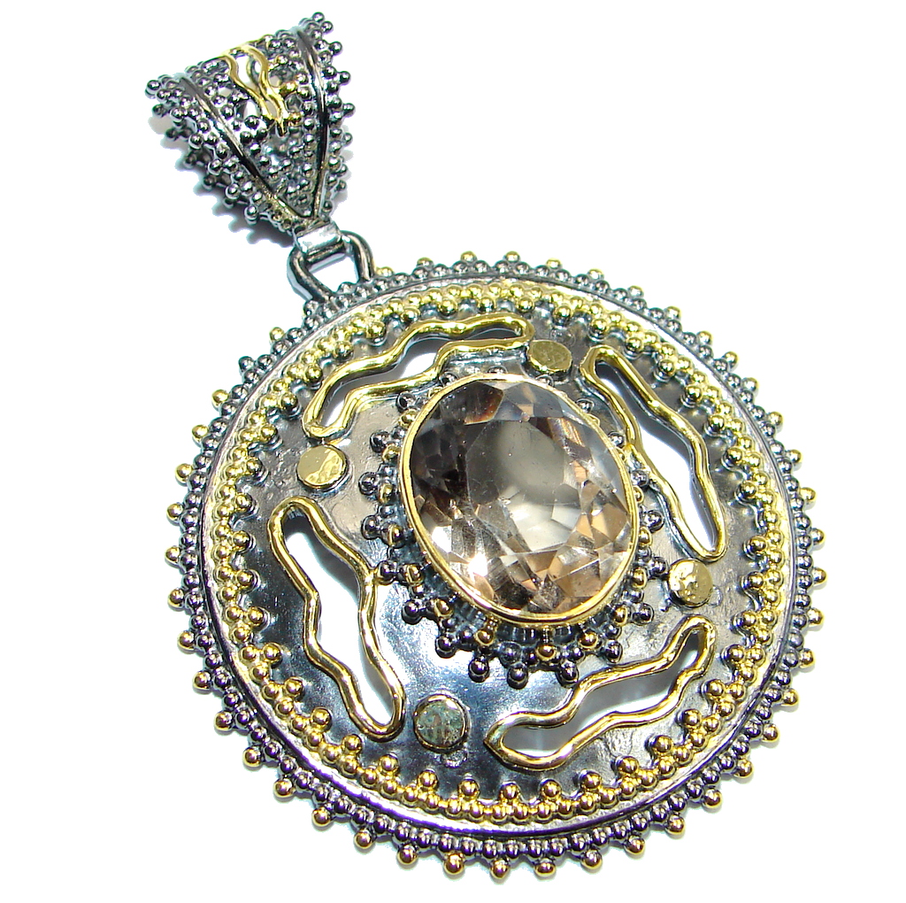 Vintage Style Smoky Topaz Gold Rhodium plated over Sterling Silver Pendant