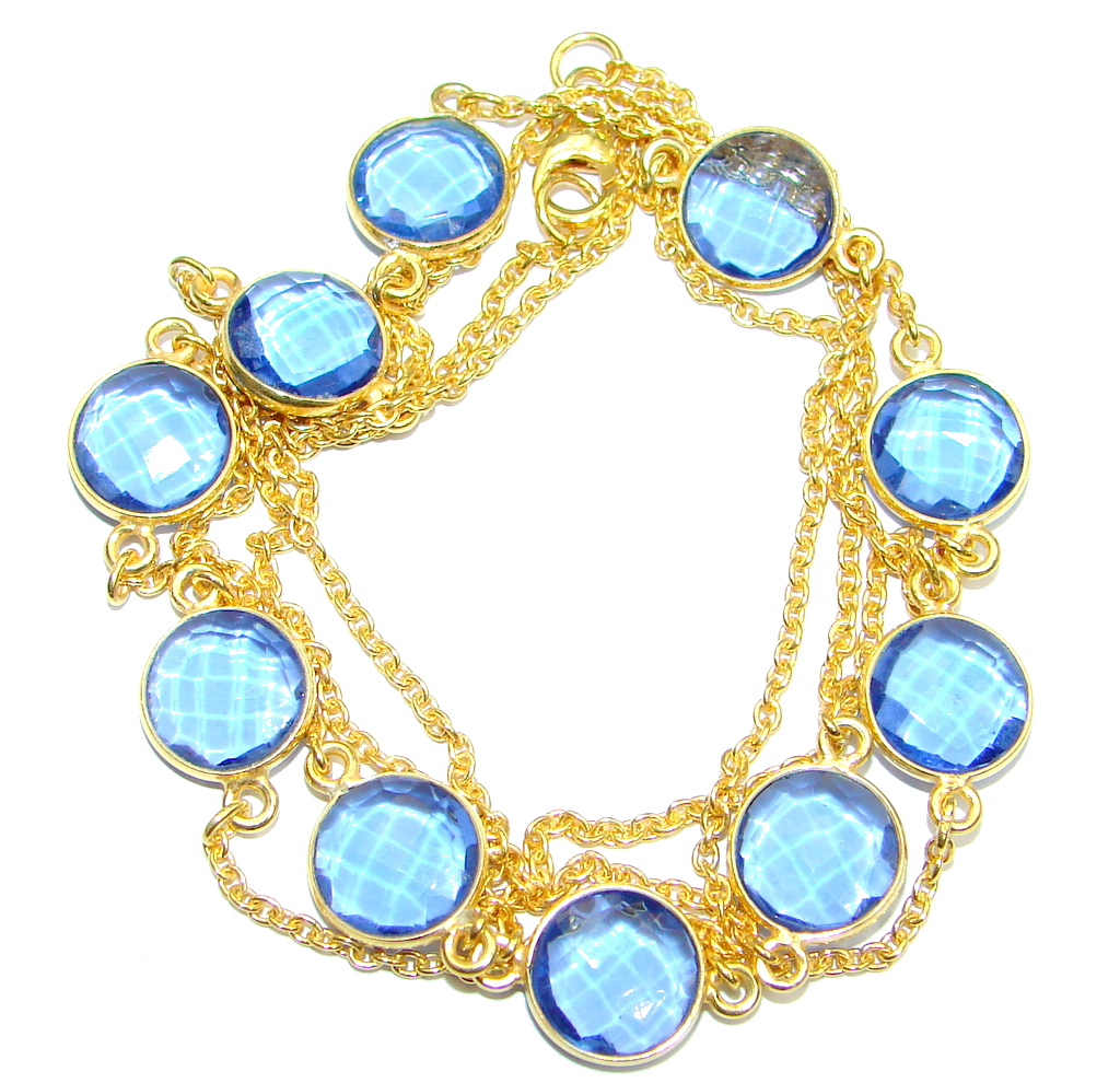 36 inches simulated Tanzanite Gold plated over Sterling Silver Necklace