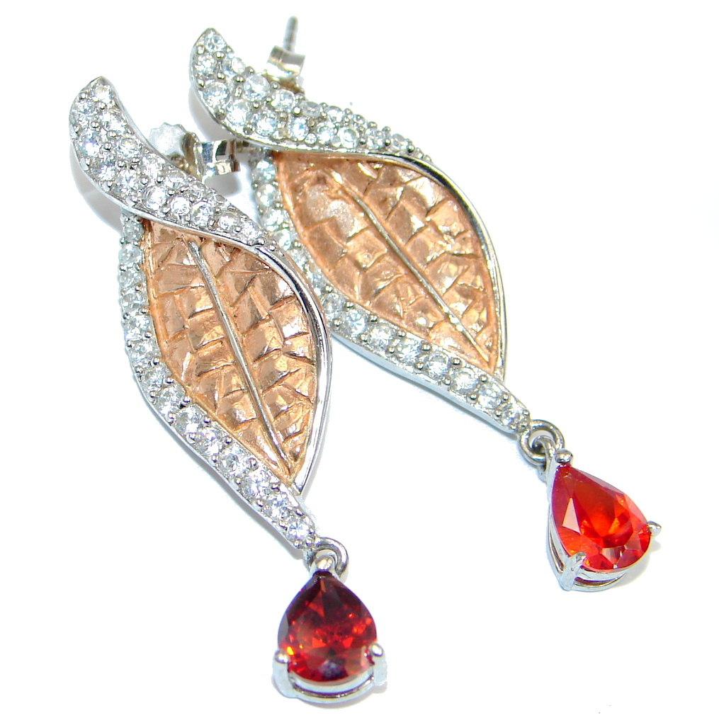 Genuine Garnet Two Tones Sterling Silver handmade stud earrings