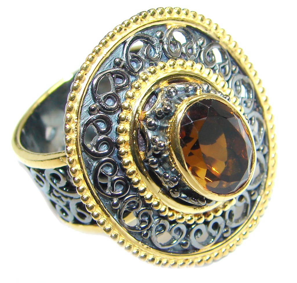 Genuine Smoky Topaz gold Rhodium plated over Sterling Silver ring size adjustable