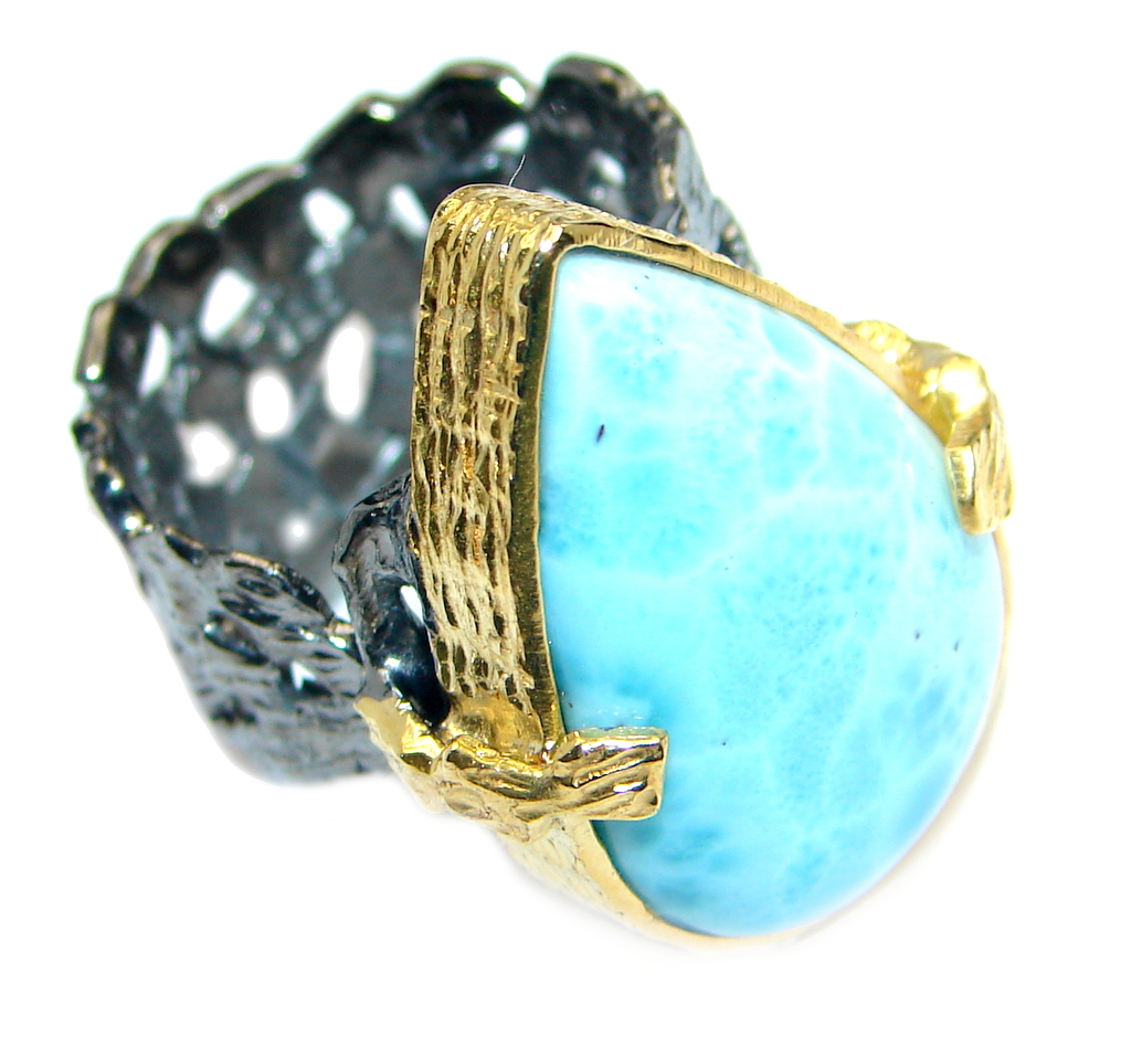 Genuine Larimar Gold Rhodium plated Sterling Silver handmade Ring size adjustable