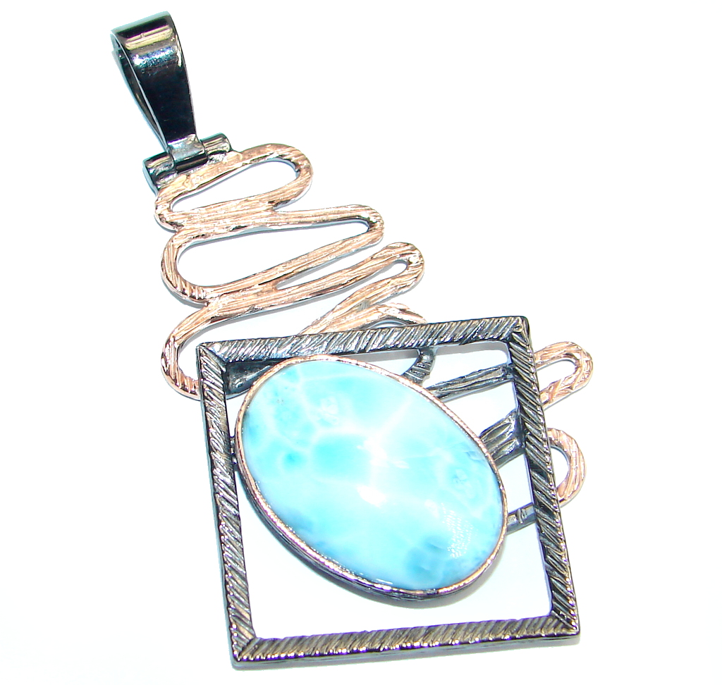 Modern Blue Larimar Rose Gold Rhodium plated over Sterling Silver handmade Pendant
