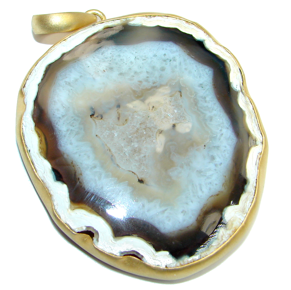 Huge 60 grams! Botswana Agate Gold plated over Sterling Silver handcrafted Pendant