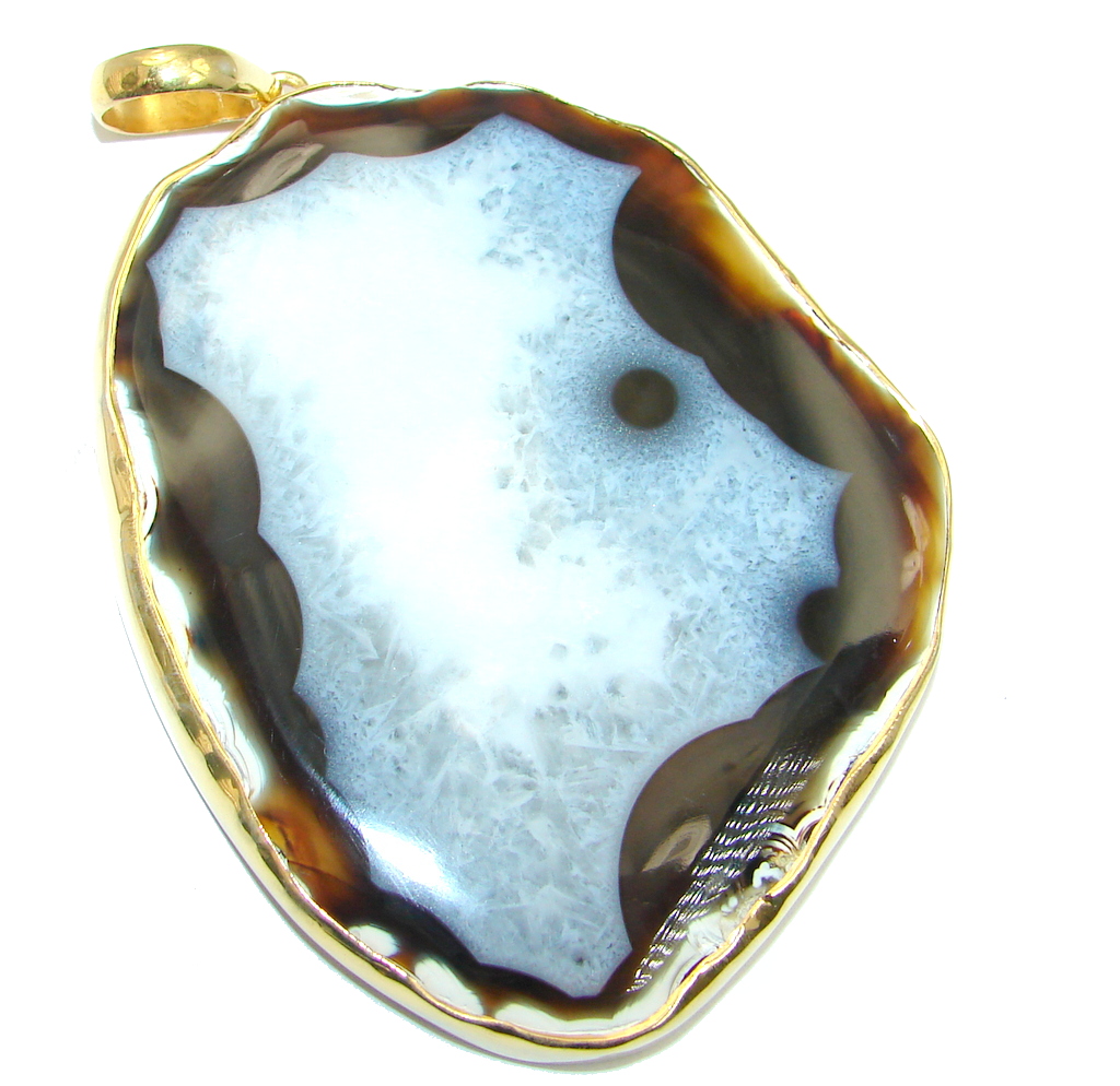 Huge Genuine Dendritic Agate Gold plated Sterling Silver Pendant