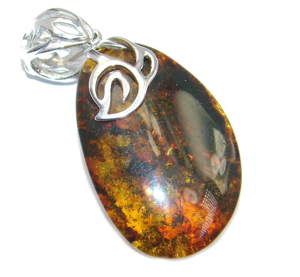 Vintage Design natural Baltic Amber Sterling Silver handmade Pendant