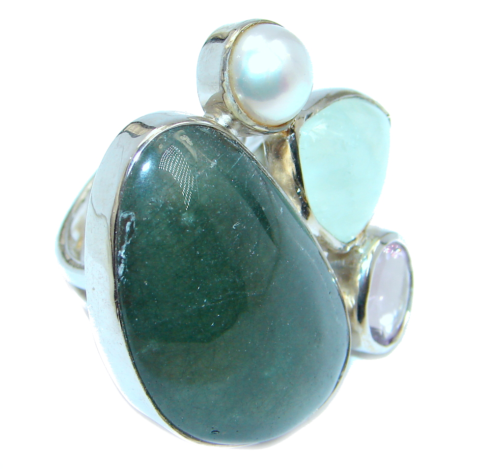 Supernova AAA+ Green Moss Prehnite Sterling Silver ring; size adjustable