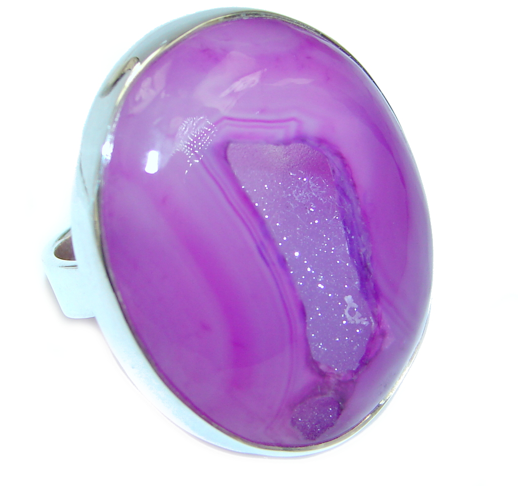 Pink Druzy Agate Sterling Silver handmade Ring s. 6 1/4