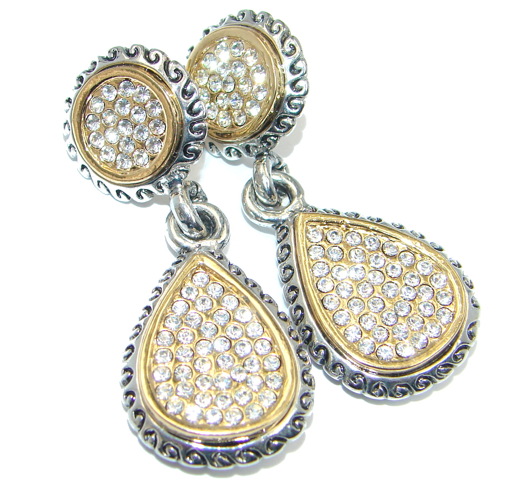Exclusive White Topaz Two Tones Sterling Silver earrings