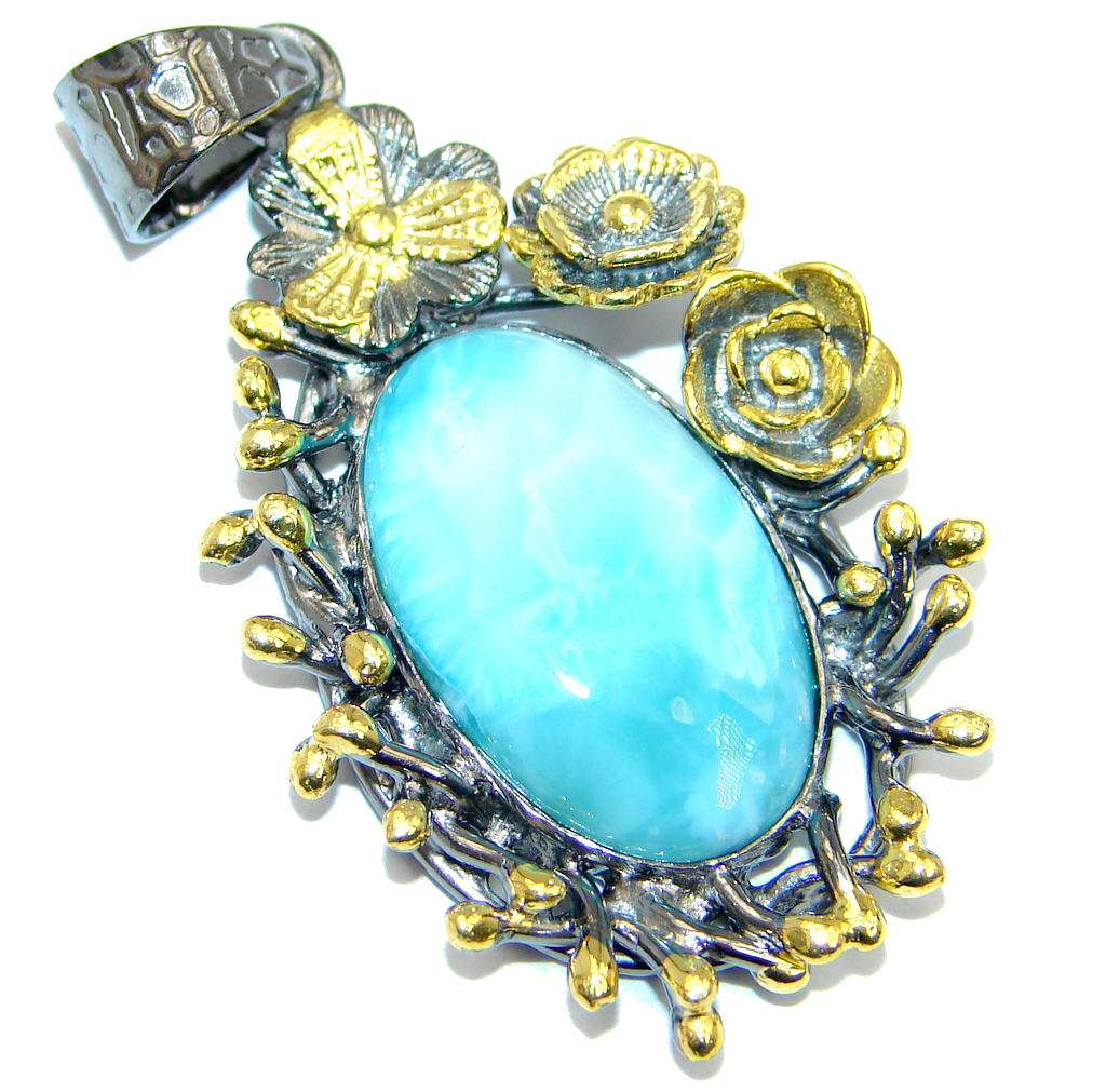 Natural AAA Blue Larimar Gold Rhodium plated over Sterling Silver Pendant