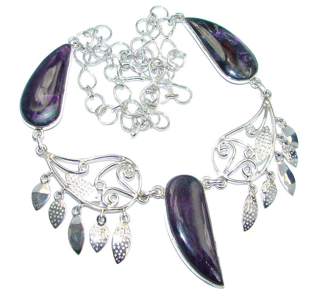 Natural Siberian Charoite Sterling Silver handmade Necklace