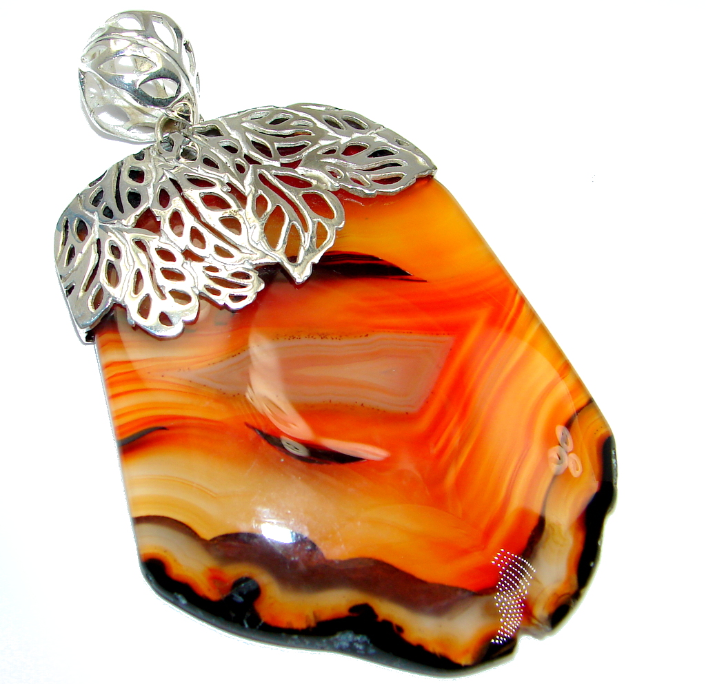 Perfect Orange Botswana Agate Sterling Silver Pendant