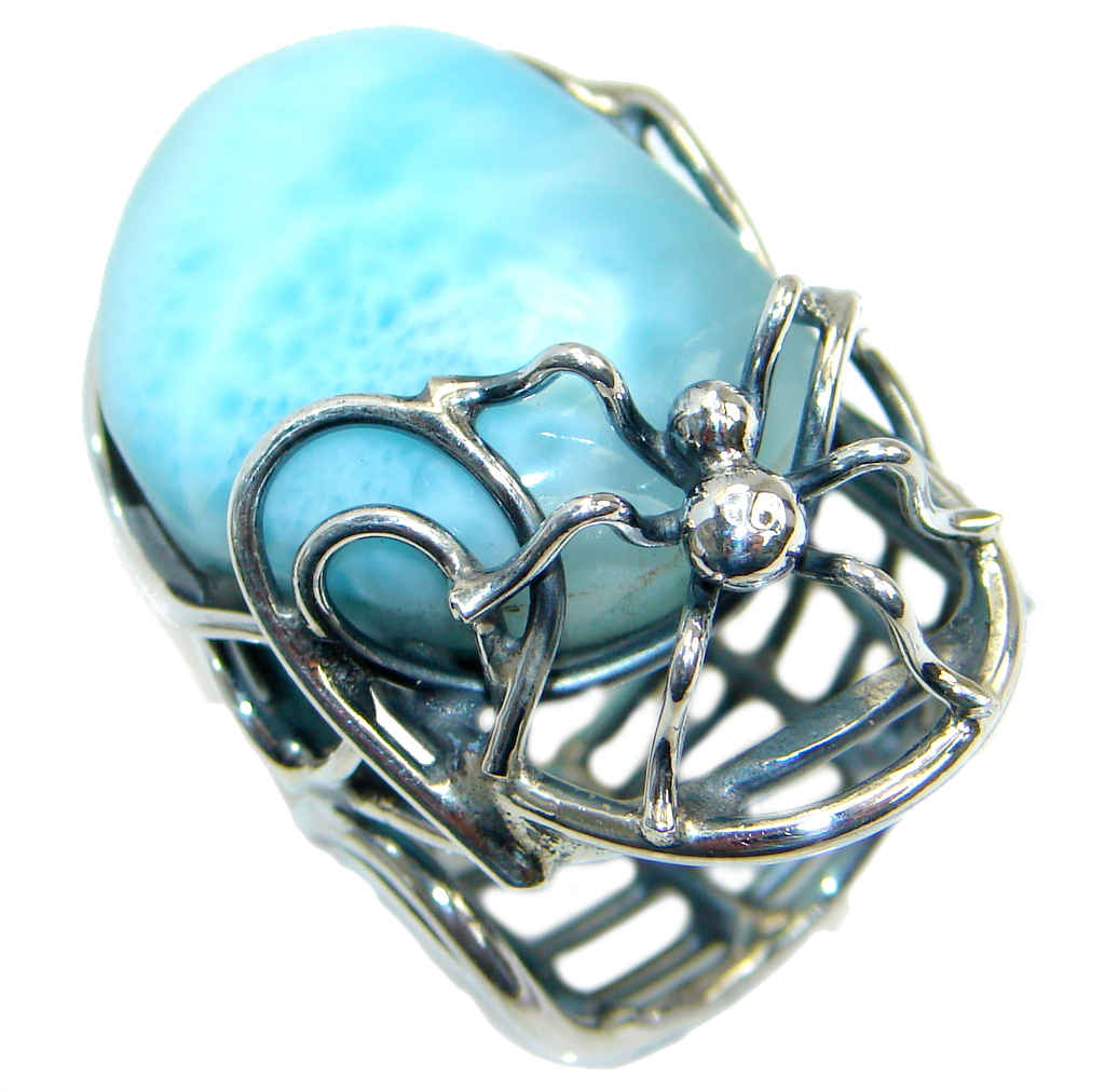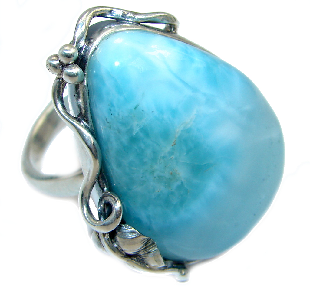 Genuine AAA Blue Larimar Sterling Silver handmade Ring size adjustable
