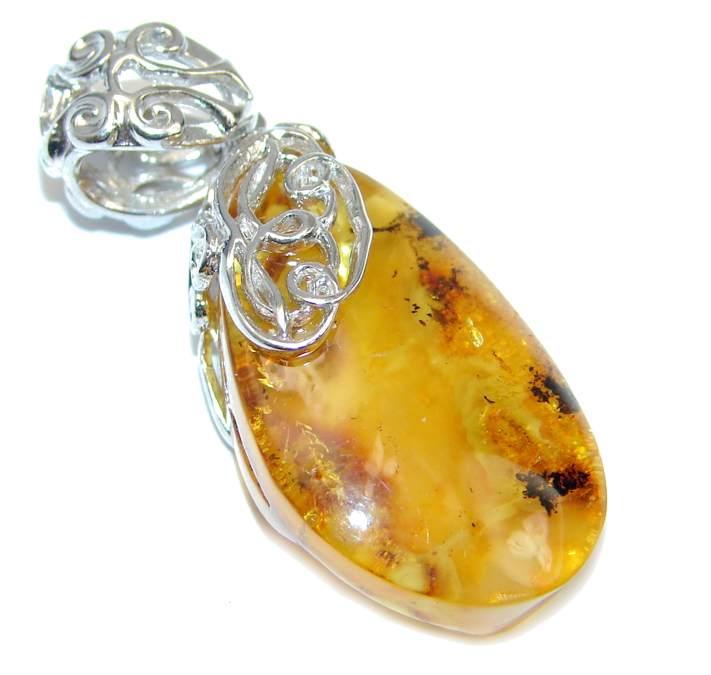 Vintage Design Golden natural Baltic Amber Sterling Silver Pendant