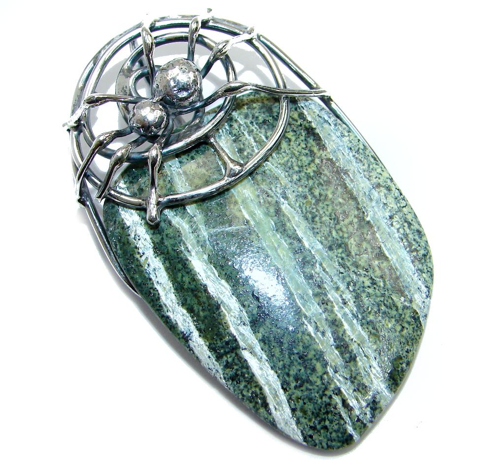 Huge Incredible AAA+ Green Skin Snake Jasper Sterling Silver handcrafted Pendant