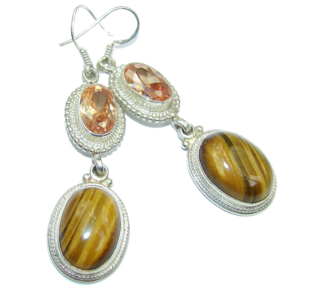 Classic Golden Tigers Eye Sterling Silver Earrings