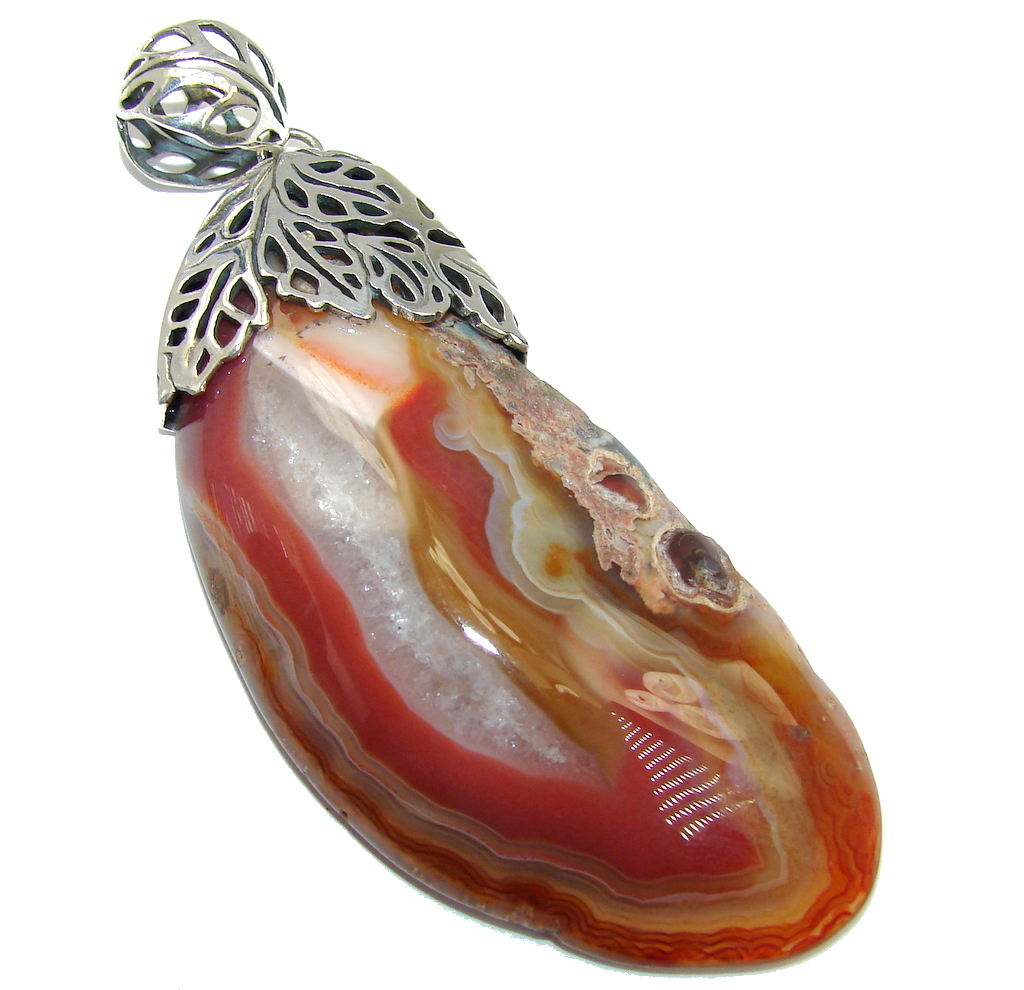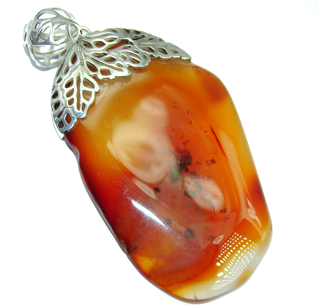 Perfect Orange Island Botswana Agate Sterling Silver Pendant