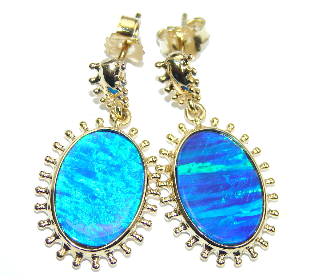 Ocean Blue Japanese Fire Opal Gold over Sterling Silver earrings
