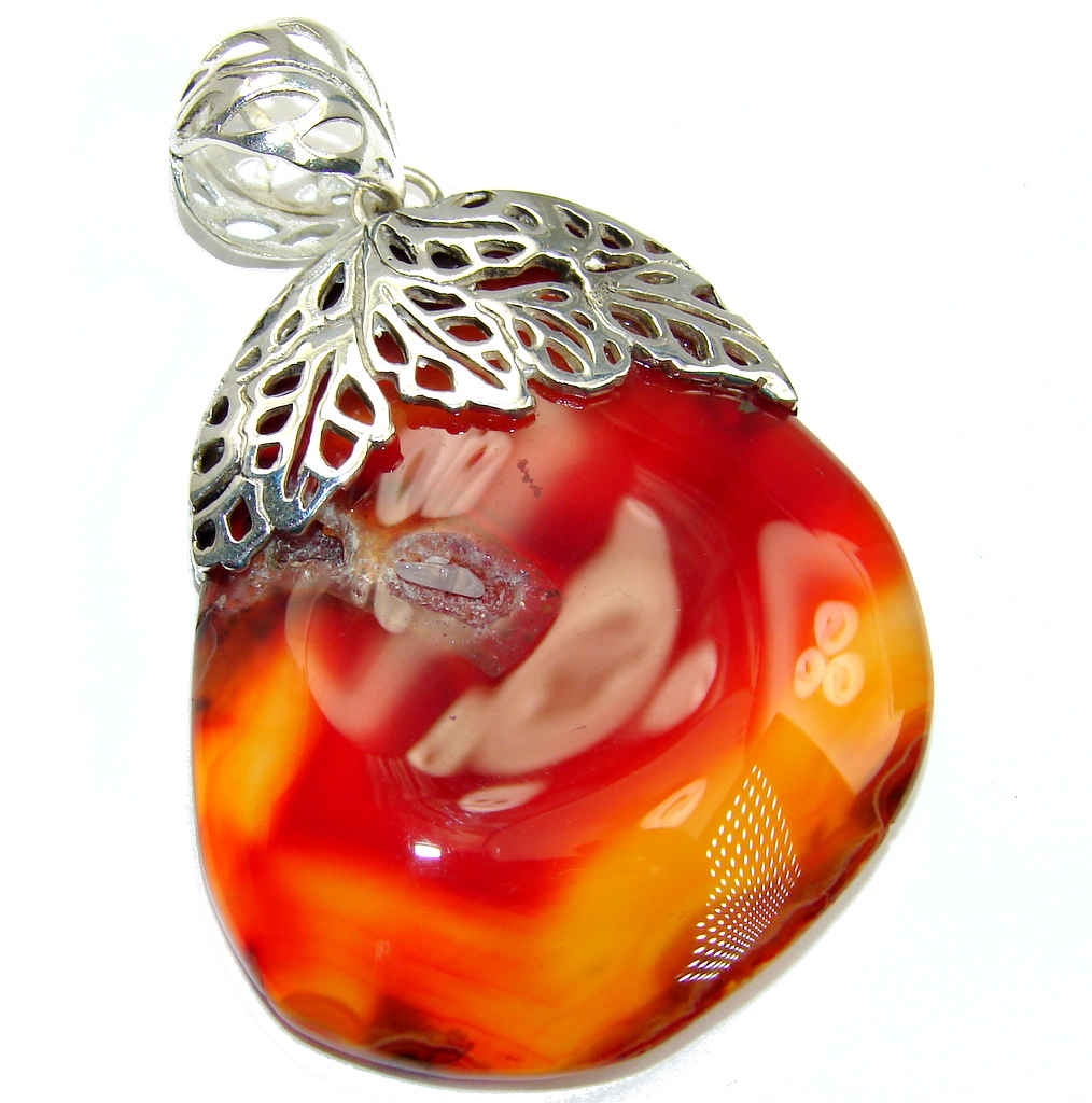 Perfect Orange Botswana Agate Sterling Silver Pendant