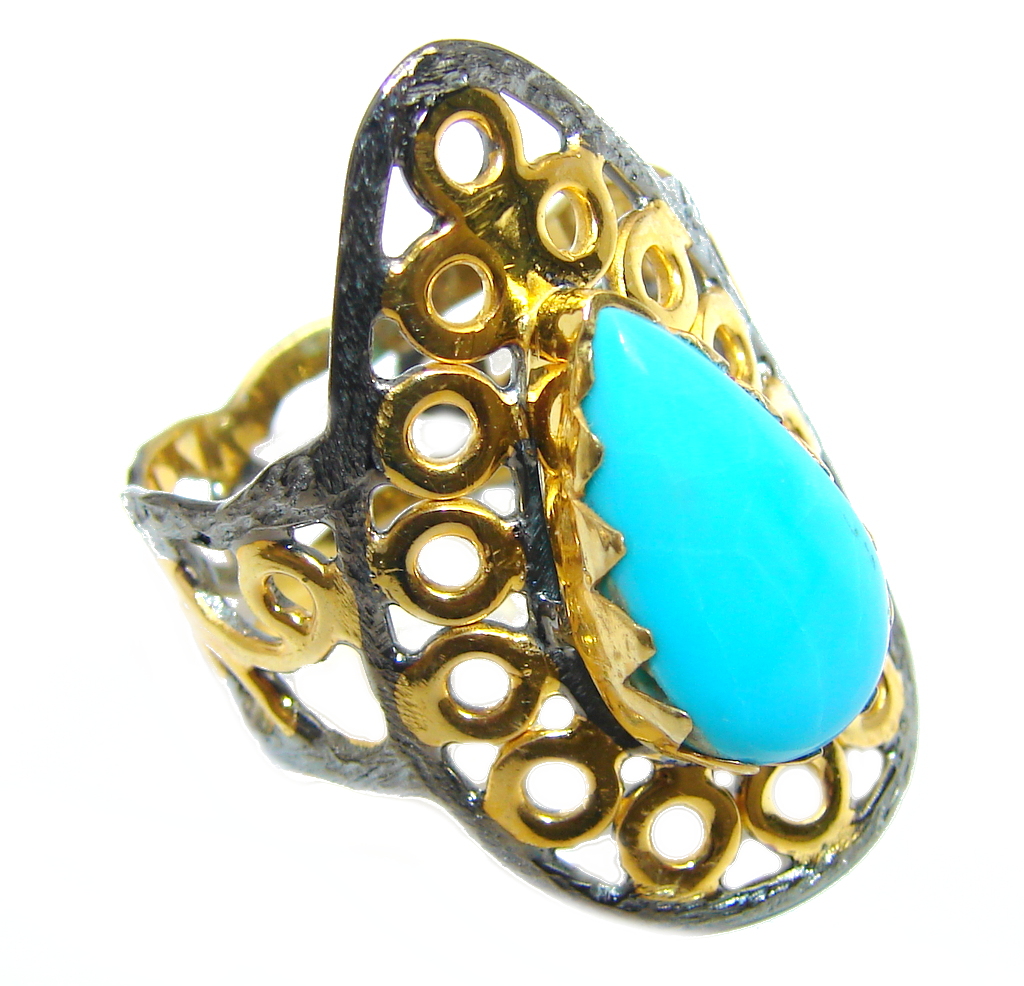 Sleeping Beauty Blue Turquoise Gold Rhodium Plated Sterling Silver Ring s. 9