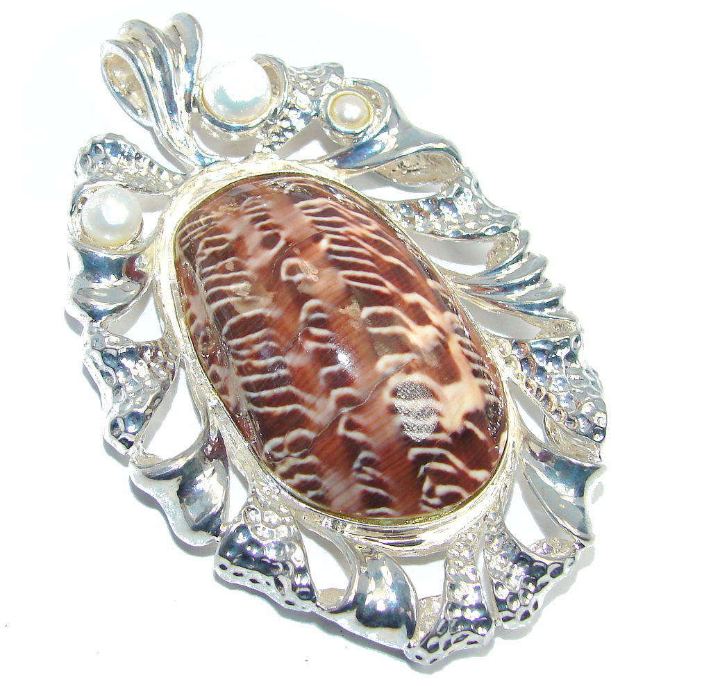 Huge Real Sea Shell Pearls Silver Tone Pendant