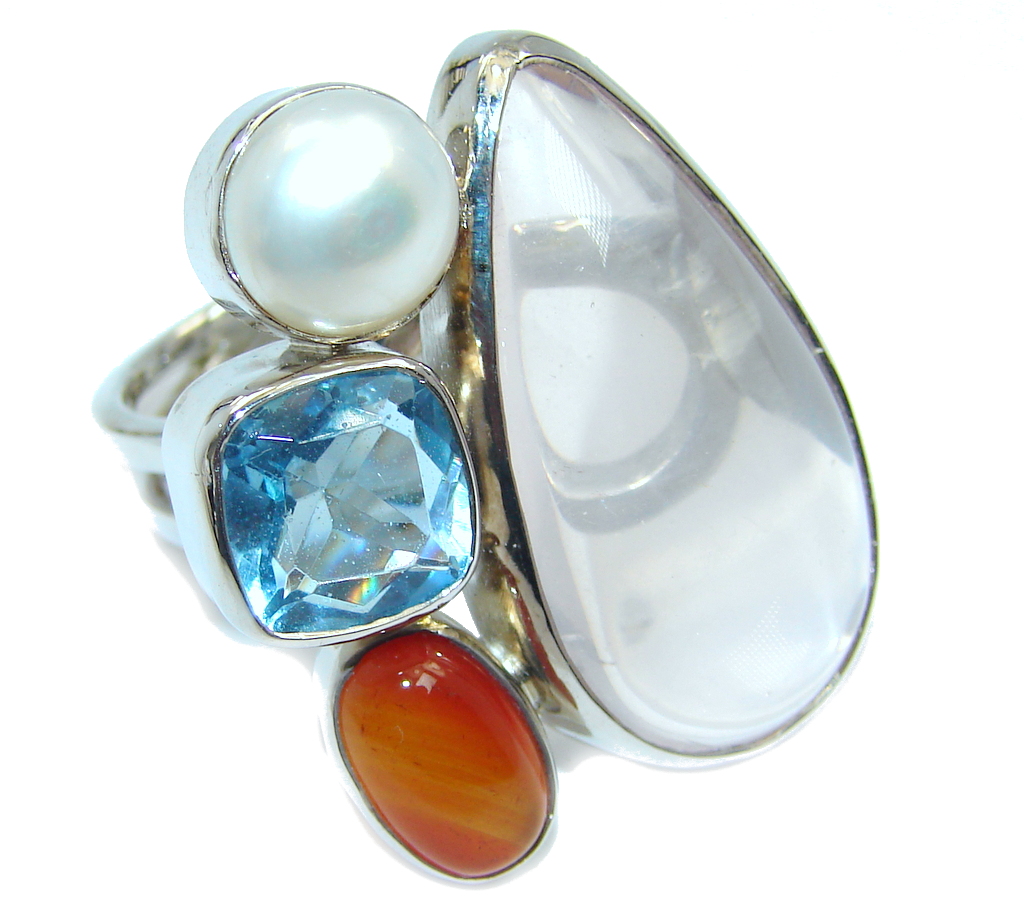 Excellent Rose Quartz Sterling Silver ring size adjustable