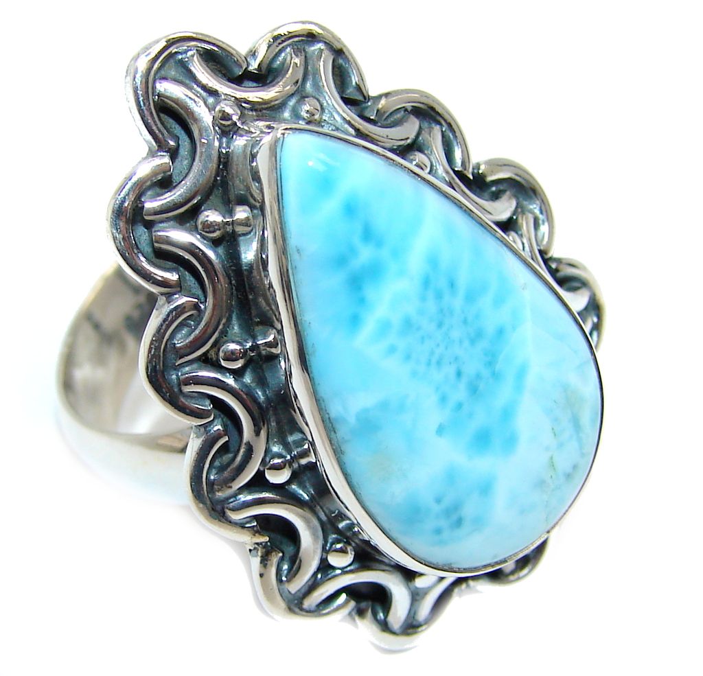 Sublime quality Blue Larimar Sterling Silver Ring size 9 1/4